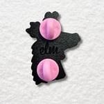 This was an exciting collaboration! Elm shared her original dragon art, and together we brought her vision to life through this pin. Her original pencil sketch can be seen on the backing card. The pin is 1.5" tall, and soft enamel with an epoxy coat. The backstamp honors Elm and her original design. Two pink rubber clutches tie this piece together.