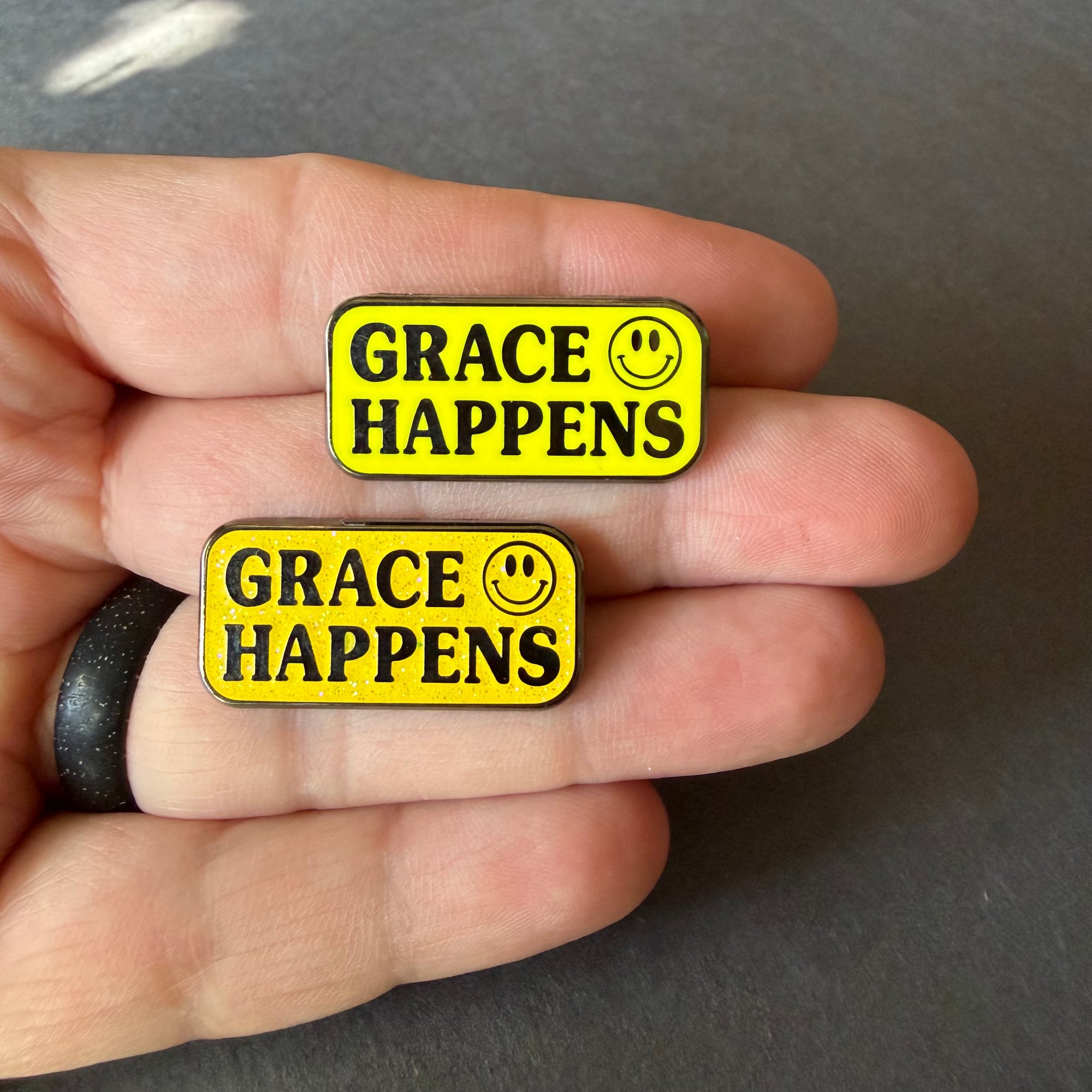 Grace Happens Enamel Pin, Glitter or No Glitter Variants