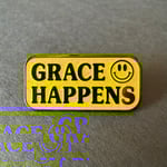 Grace Happens Vintage Pin hearkening back to a very different, yet common saying
