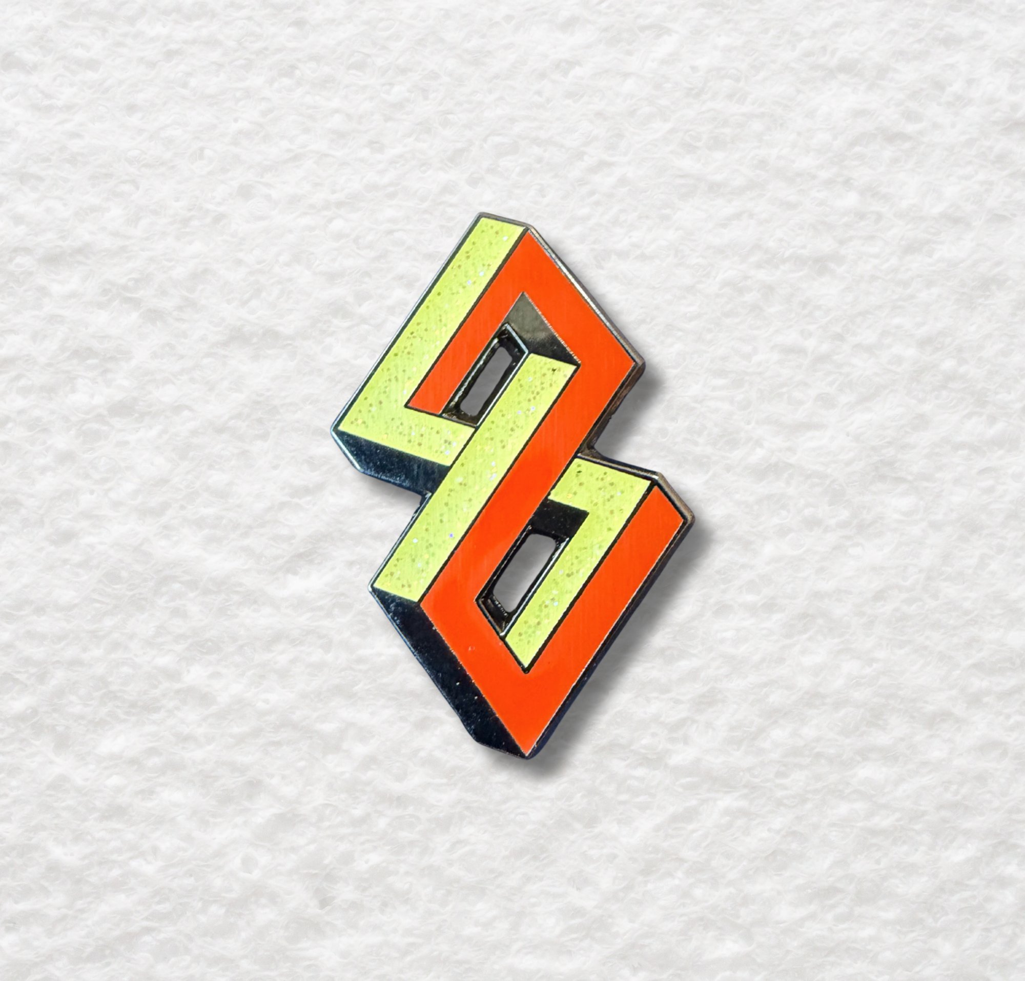 Each pin is crafted in hard enamel with polished metal and secure backings, ready to wear on jackets, bags, hats, or to display on your pin board. fills, creating a small wearable sculpture for fans of Escher and mind-bending design.