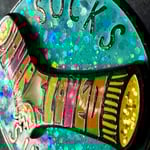 This funny spinner enamel pin reads “Socks Suck” with a glittery spinning center, a playful fidget pin for people who prefer bare feet or wild sock opinions. In truth, this was originally designed as shots fired at the fake accounts on message board or social media groups who hide behind fake accounts: "socks." It's a coded pin and the center spells "you are loved" in the negative space. It's probably my most stunning pin in terms of color and function and glitter. However, the coded message and obscure topic makes this suited for a small audience. The back calls out from Phish's song "Sanity" - "i don't care if the socks explode."