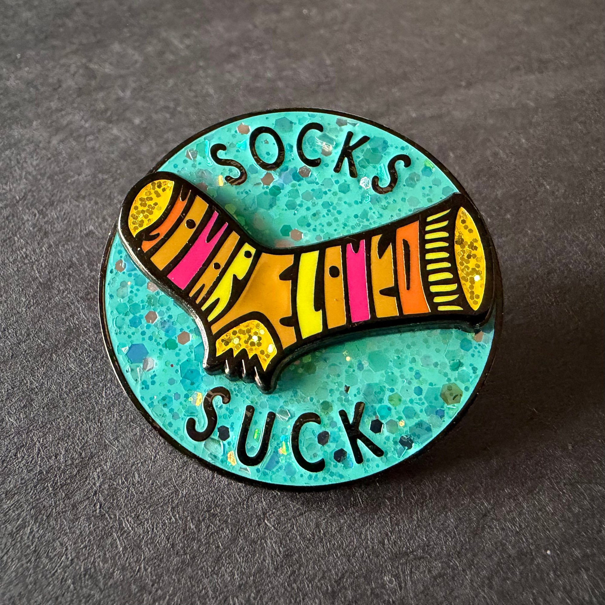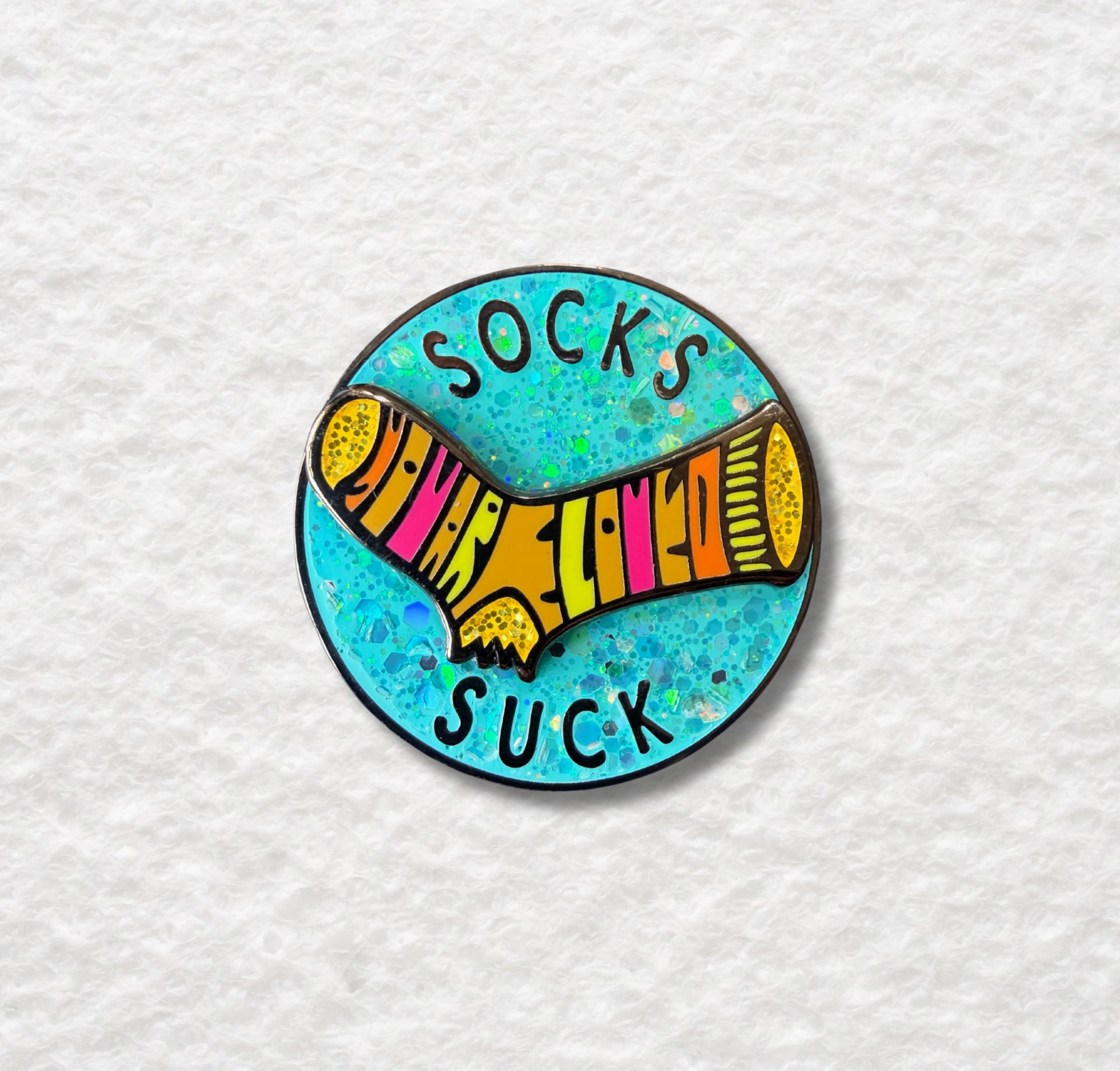 Socks Suck Spinner Enamel Pin – Funny Glitter Spinning Design