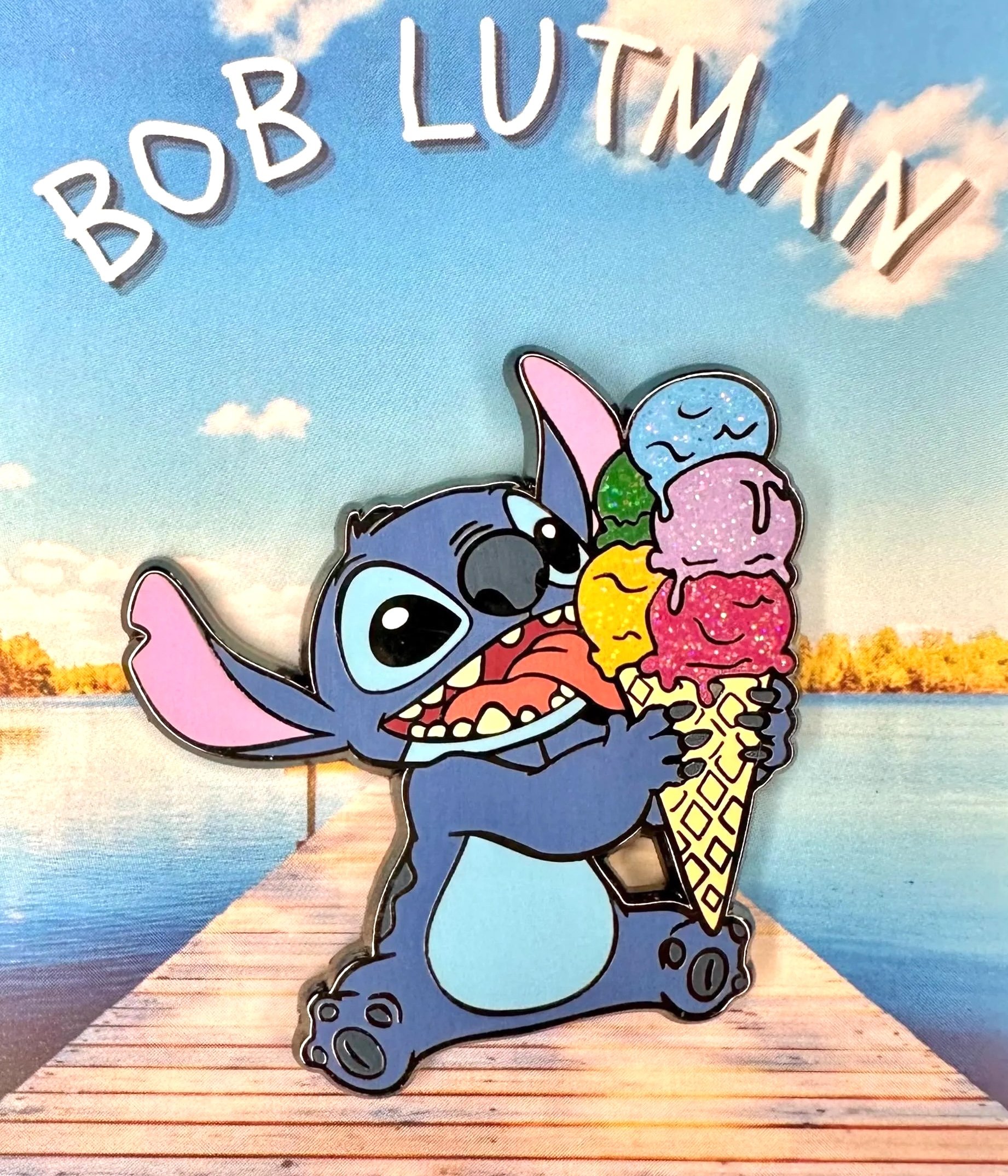Festive Enamel Pin with Glitter Ice Cream Cone