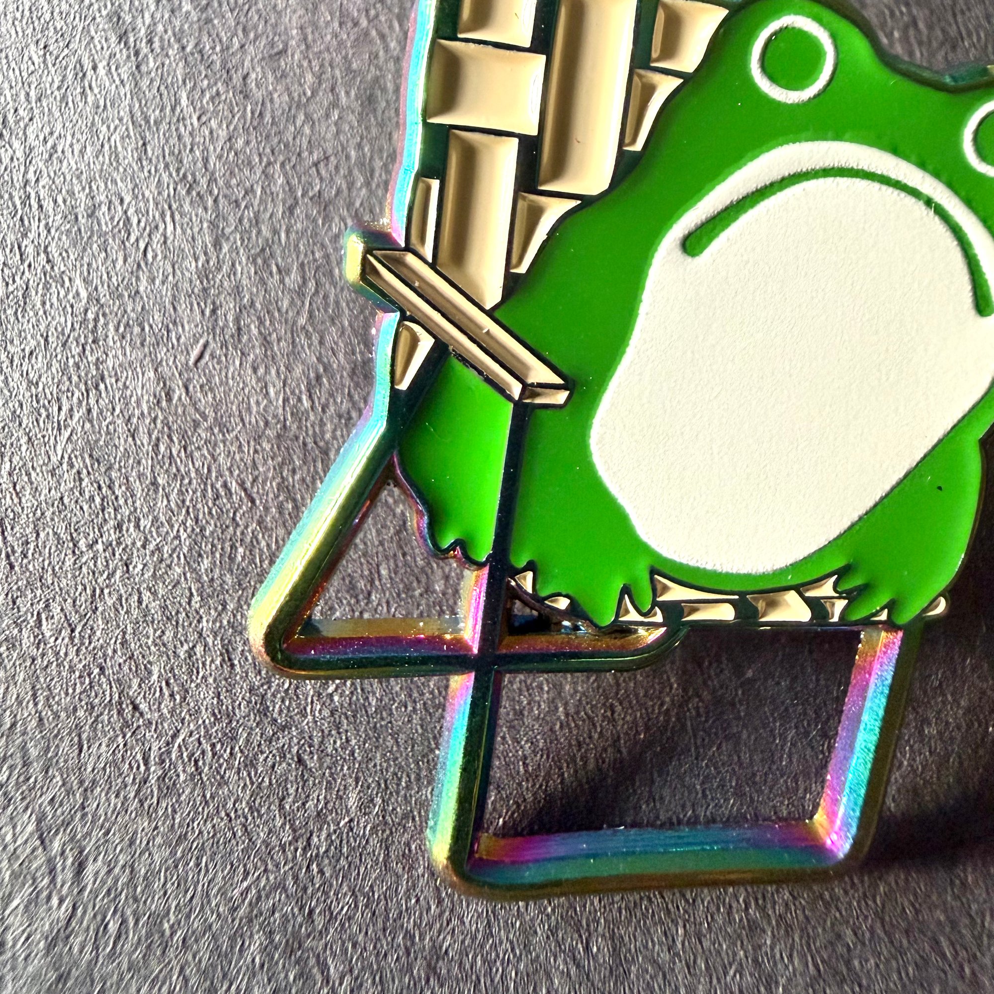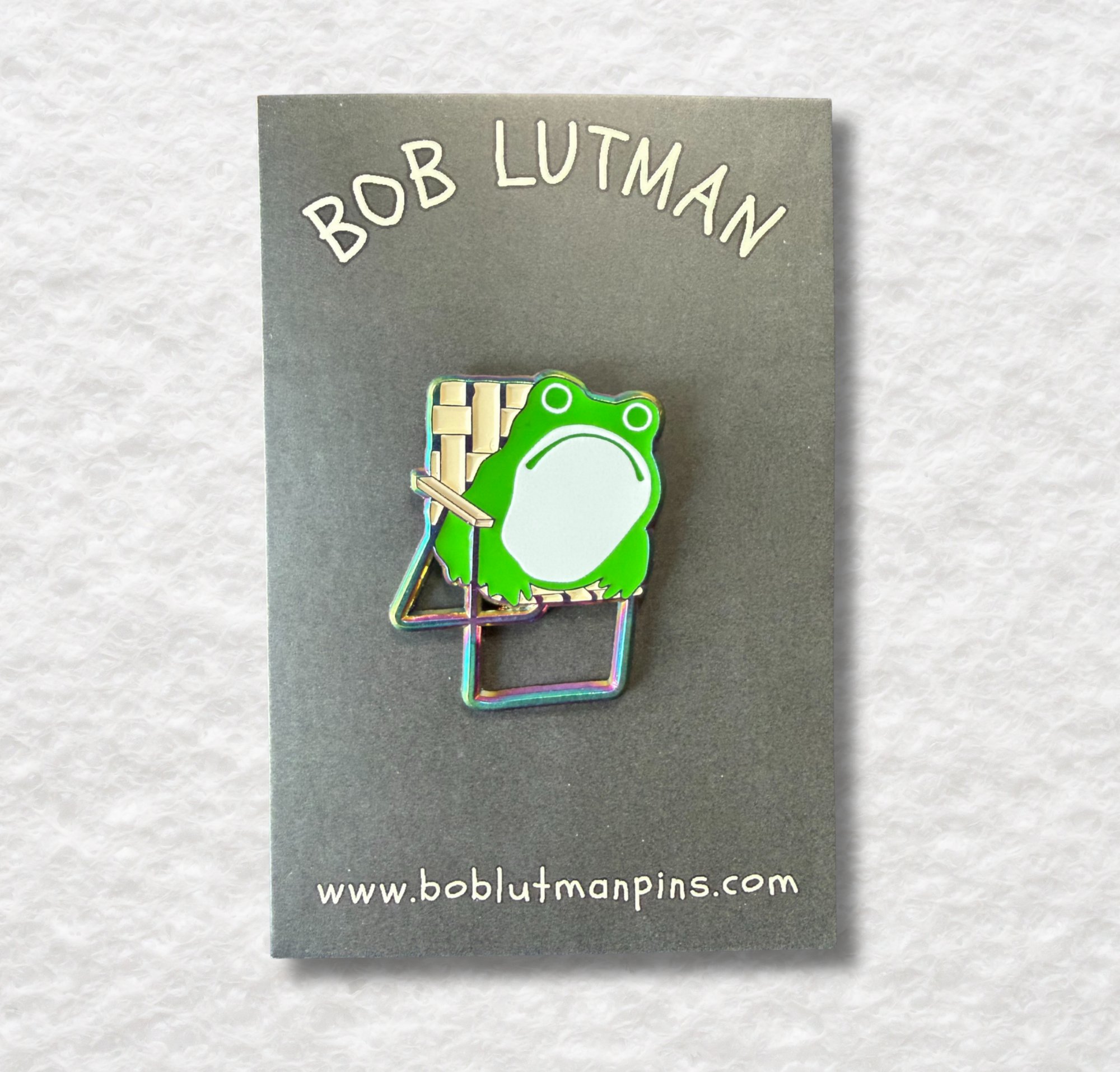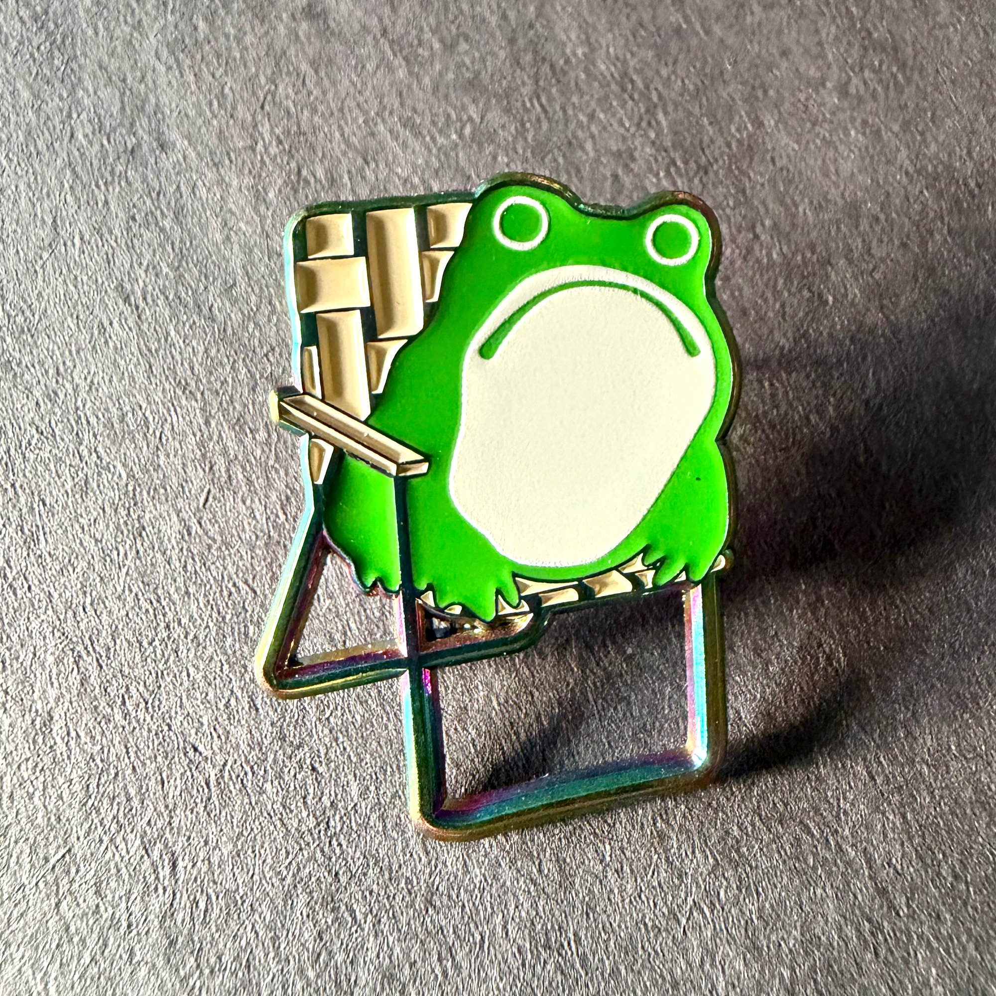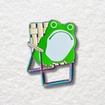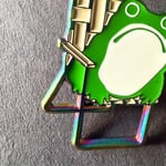Sumi Frog in Lawn Chair Enamel Pin in Rainbow Plating