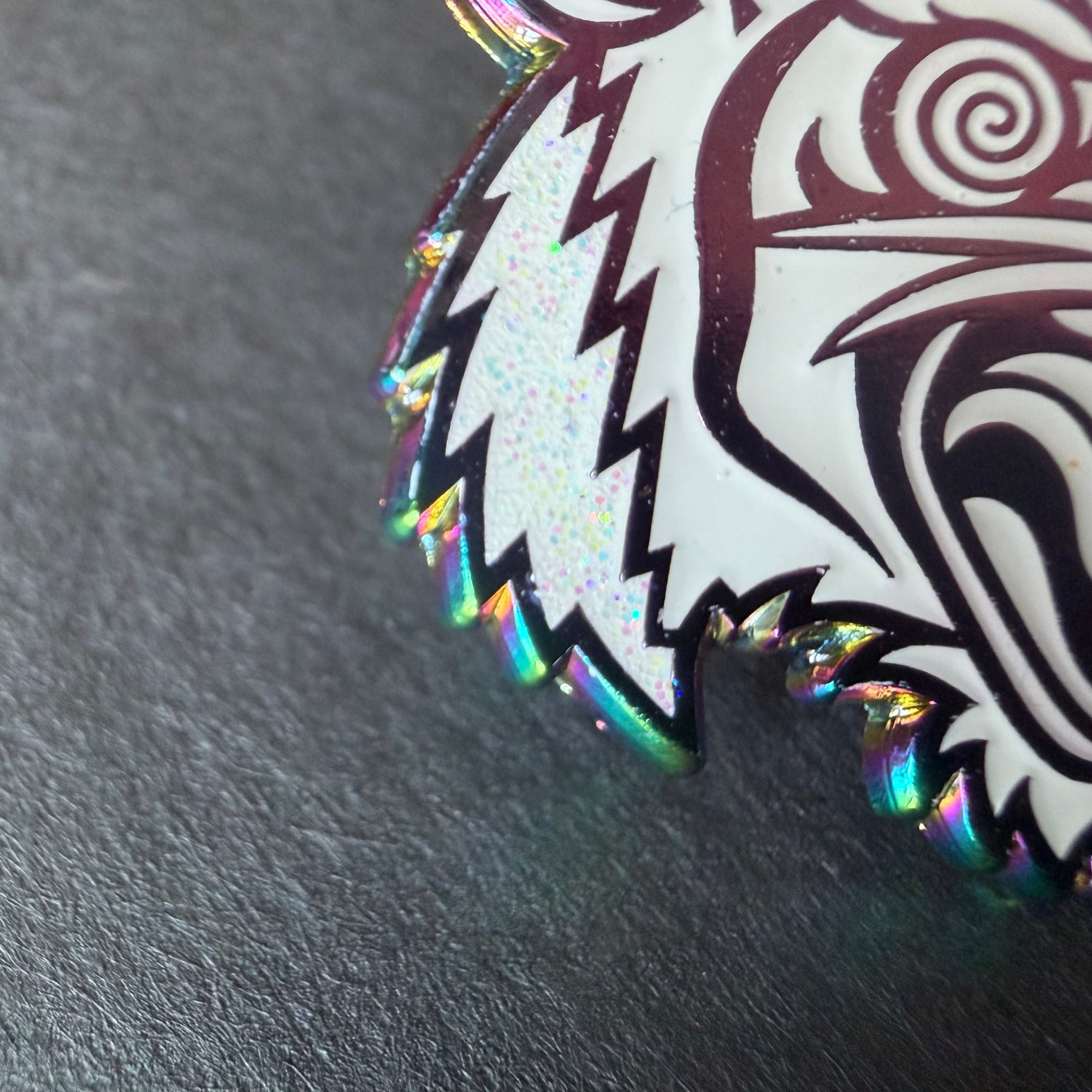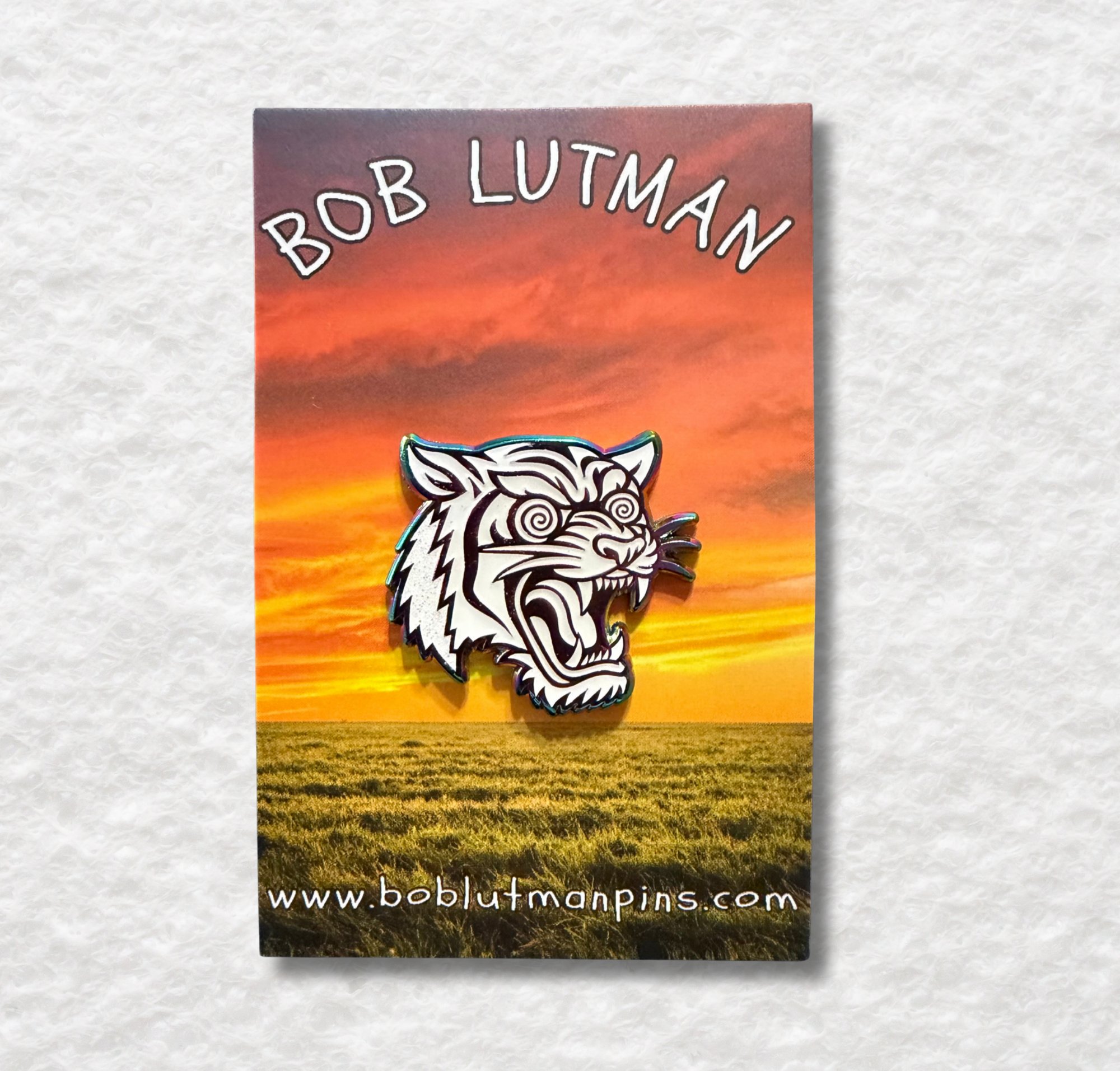 White Tiger in a Trance Enamel Pins with Grateful Dead Bolt, Saint of Circumstance, Rainbow Plating